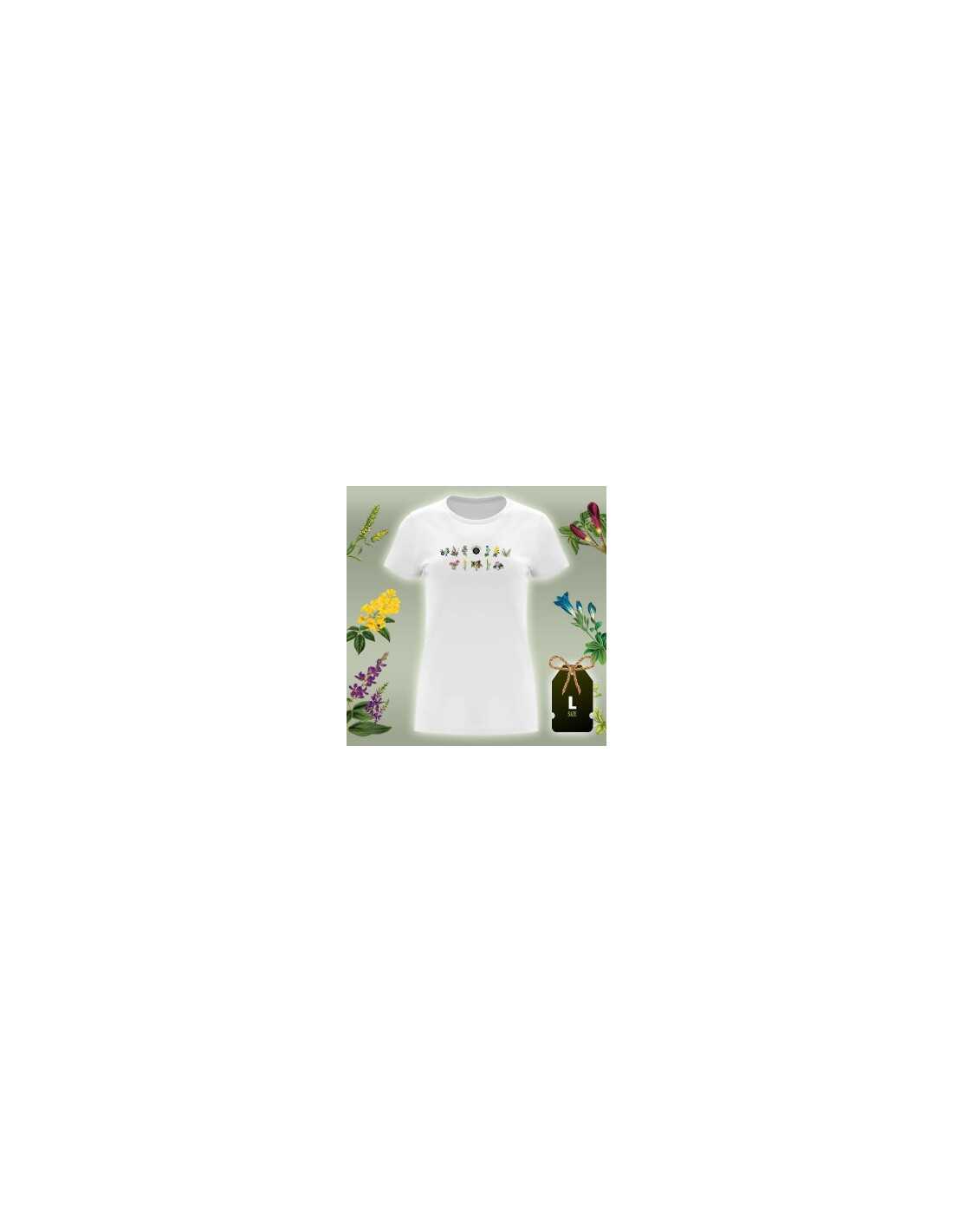 Damen- und Herren-T-Shirts mit Kräutermotiven und dem Logo von Inca Botanica.