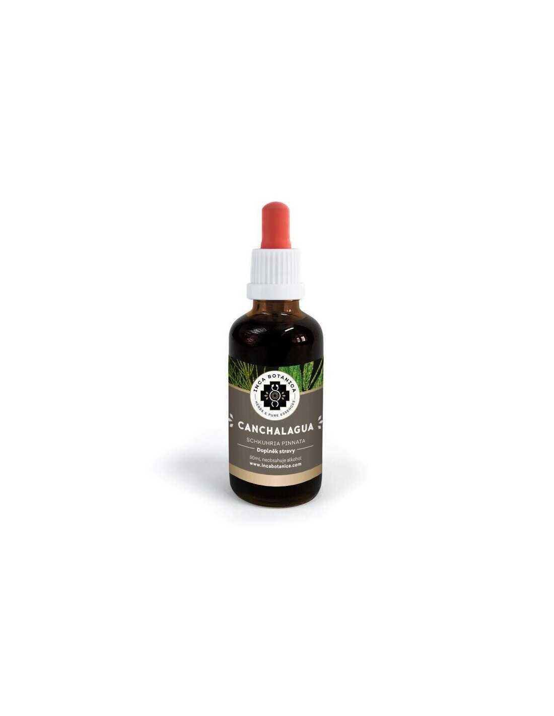Zloženie: Canchalagua - Nechtík mexický (Schkuhria pinnata), čistená voda, glycerol, sorban draselný a kyselina citrónová, neobsahuje lieh