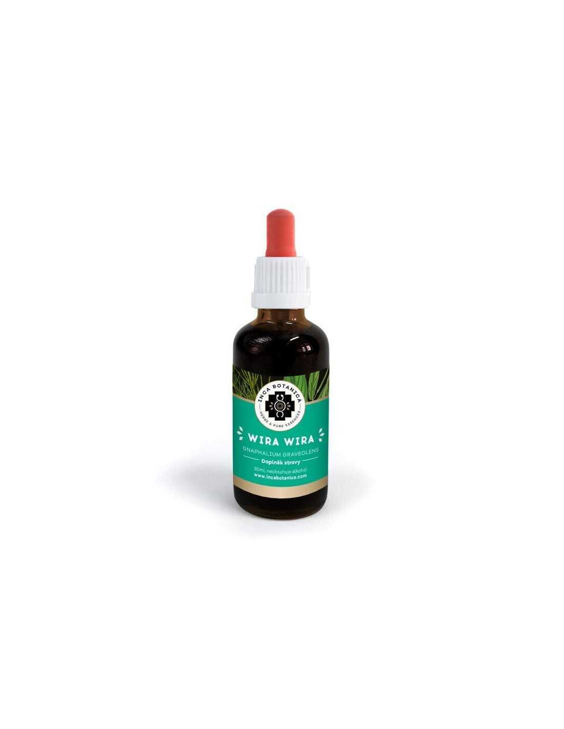 Zloženie: Wira Wira - Plesnivec peruánsky (Gnaphalium graveolens), čistená voda, glycerol, sorban draselný, kyselina citrónová, neobsahuje lieh