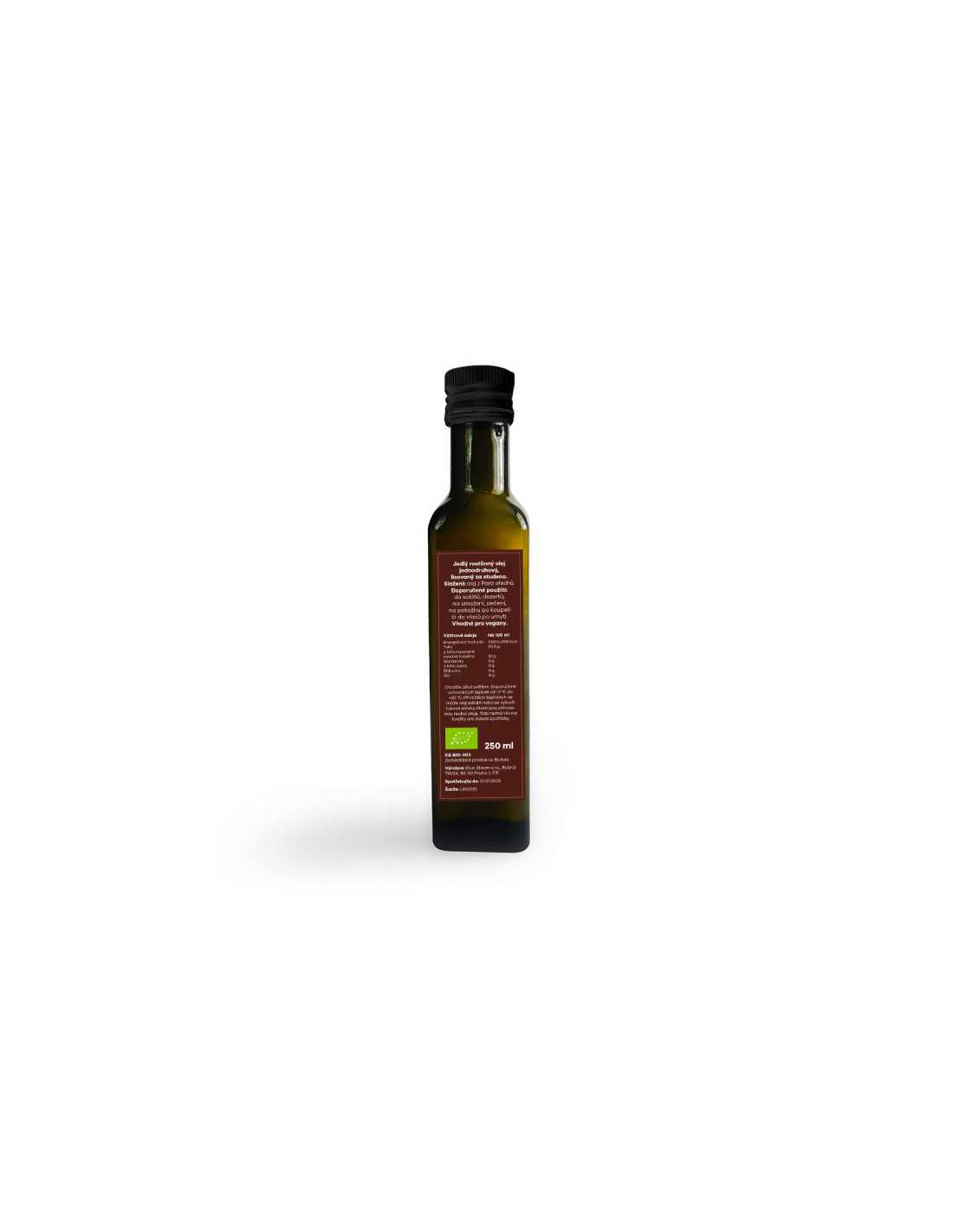 Skladovanie: Chráňte pred svetlom. Odporúčané uchovanie pri teplote od +7C do +20C. Pri nižších teplotách sa môže olej zakaliť alebo vytvoriť tukové zhluky, ktoré sú prirodzenou reakciou oleja. Toto nemá vplyv na kvalitu ani dátum spotreby.